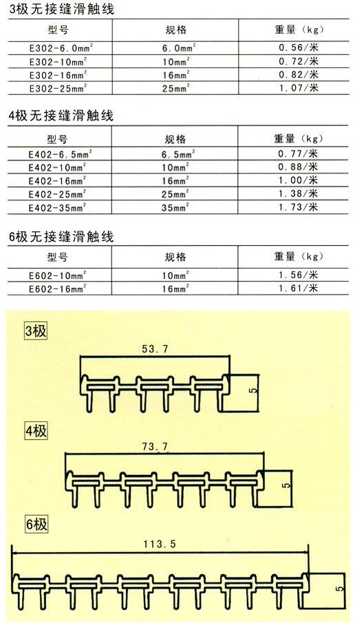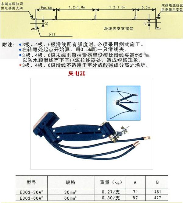 柔性一體式滑觸線是以無氧銅(導(dǎo)電率達(dá)99.99%)輸送電源、銅導(dǎo)體之厚度厚(一般標(biāo)準(zhǔn)厚為2.8m/m×10W)、壓降小、導(dǎo)電率倍佳;可根據(jù)用戶的車間長度或用戶的需求來配一條以之相同長度的安全電軌,使整個(gè)車間安全配電中間沒有任何接口,真正解決了國產(chǎn)滑觸線因接口多經(jīng)??ㄗ〖娝⒍斐啥搪坊虿荒苓\(yùn)行的問題。并且適用于曲線、弧形及高低行走的設(shè)計(jì),并且安裝簡便。從而使整套天車工程美觀、整潔又安全。產(chǎn)品有3P、