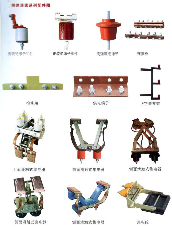 JGHX-T、JGHX-TⅡ、JGHX-TⅢ系列鋼體滑線由銅導(dǎo)軌、導(dǎo)軌支架、絕緣子組件以及外置式集電器等組件組合而成,由于該產(chǎn)品具有電流大、耐高溫、抗腐蝕等特點,因此廣泛應(yīng)用于冶金、造船、港口等行業(yè).